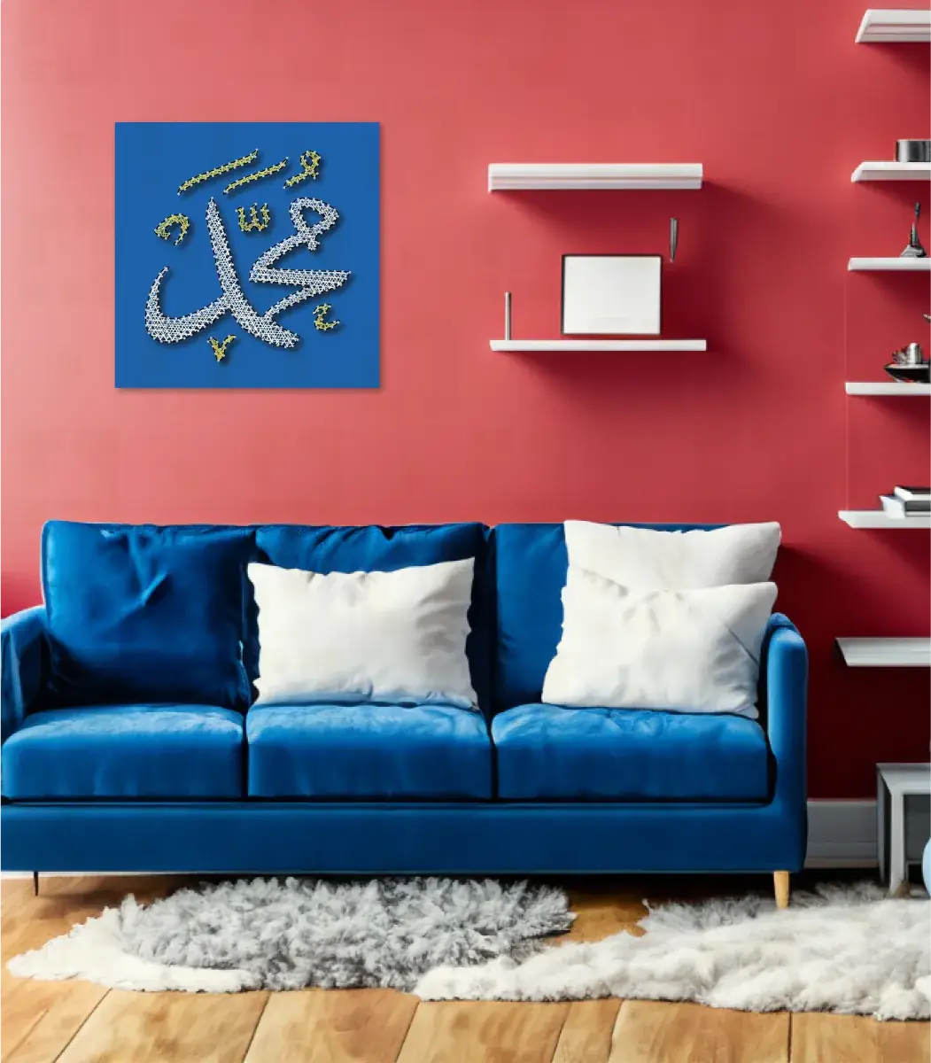 String art events el mawled el nabawy, Contemporary art handmade, Mohamed Word Inspired string art wall decor using very high quality materials, Available in Brown, blue and red.