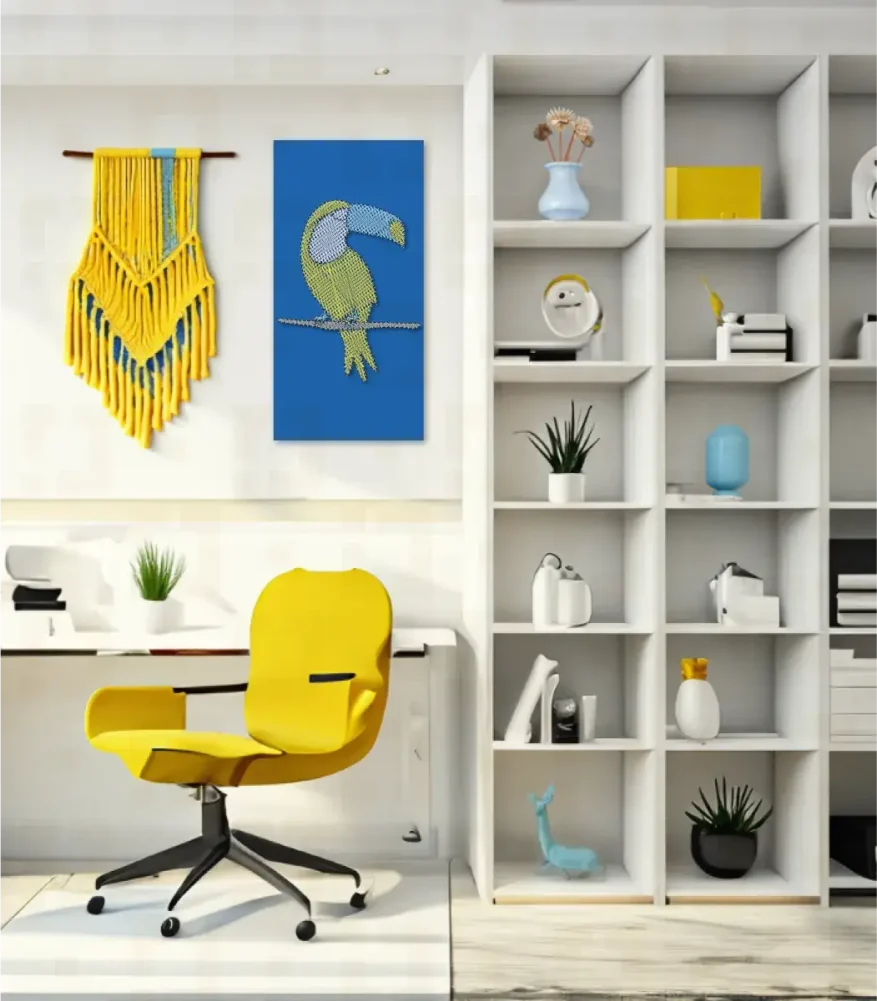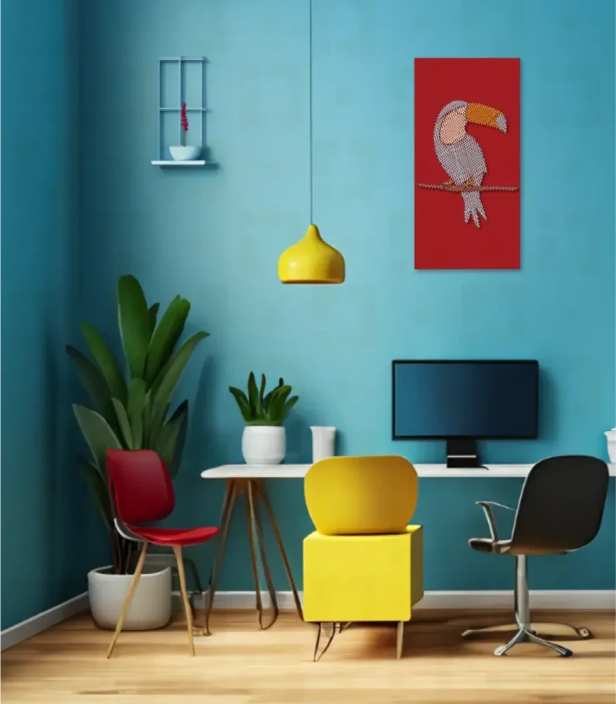 String art nature birds, Contemporary art handmade, Parrot Inspired string art wall decor using very high quality materials, Available in gray, red and blue.