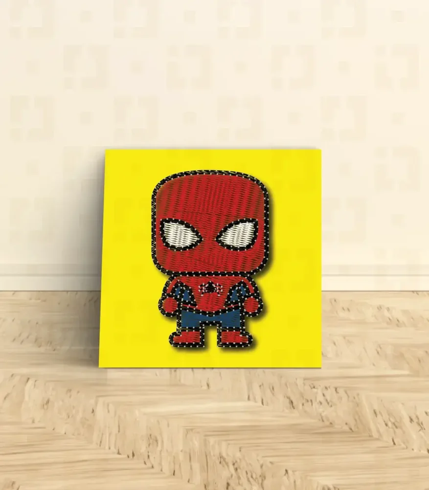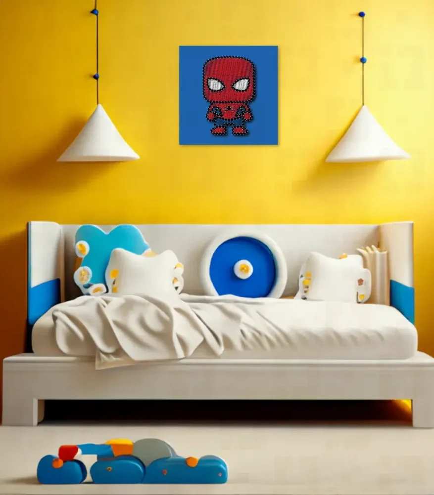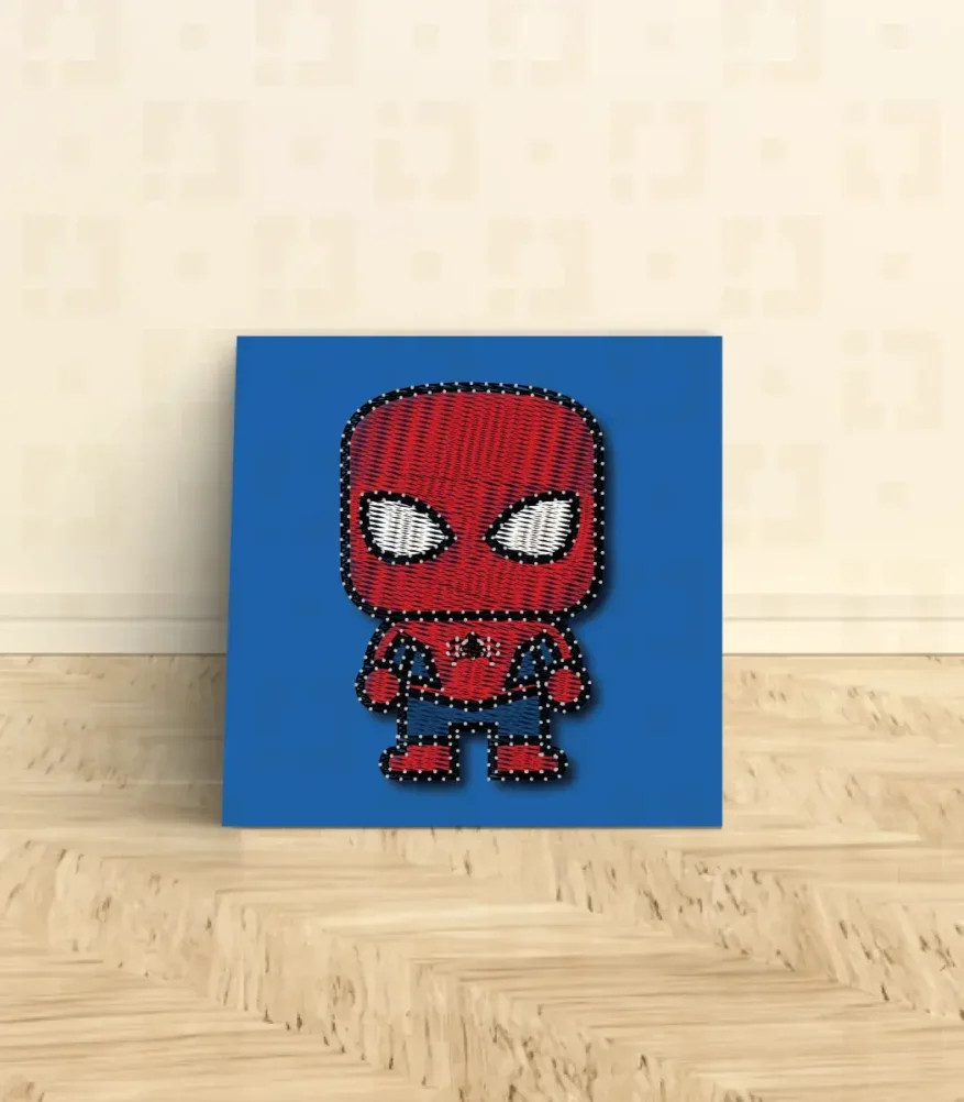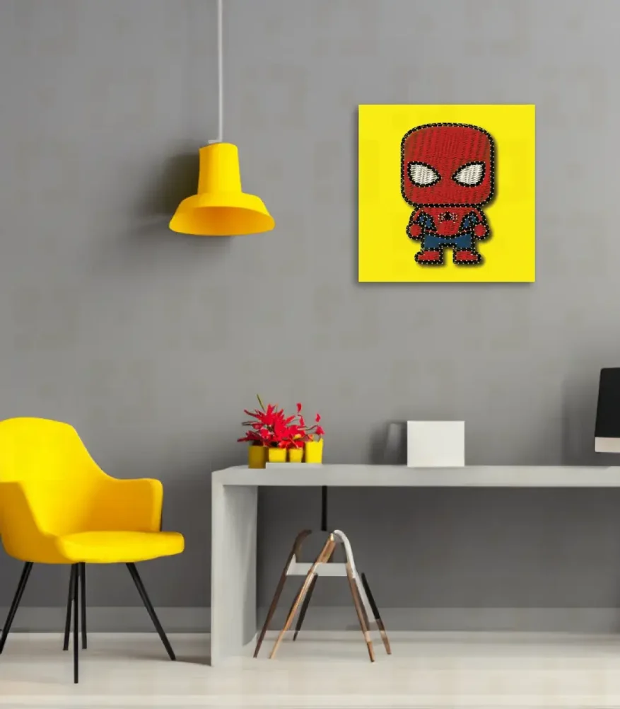 String art cartoon super heroes, Lego style characters collection, Contemporary art handmade, Spiderman lego Inspired string art wall decor created by Marvel Entertainment using very high quality materials, Available in White, yellow and blue.