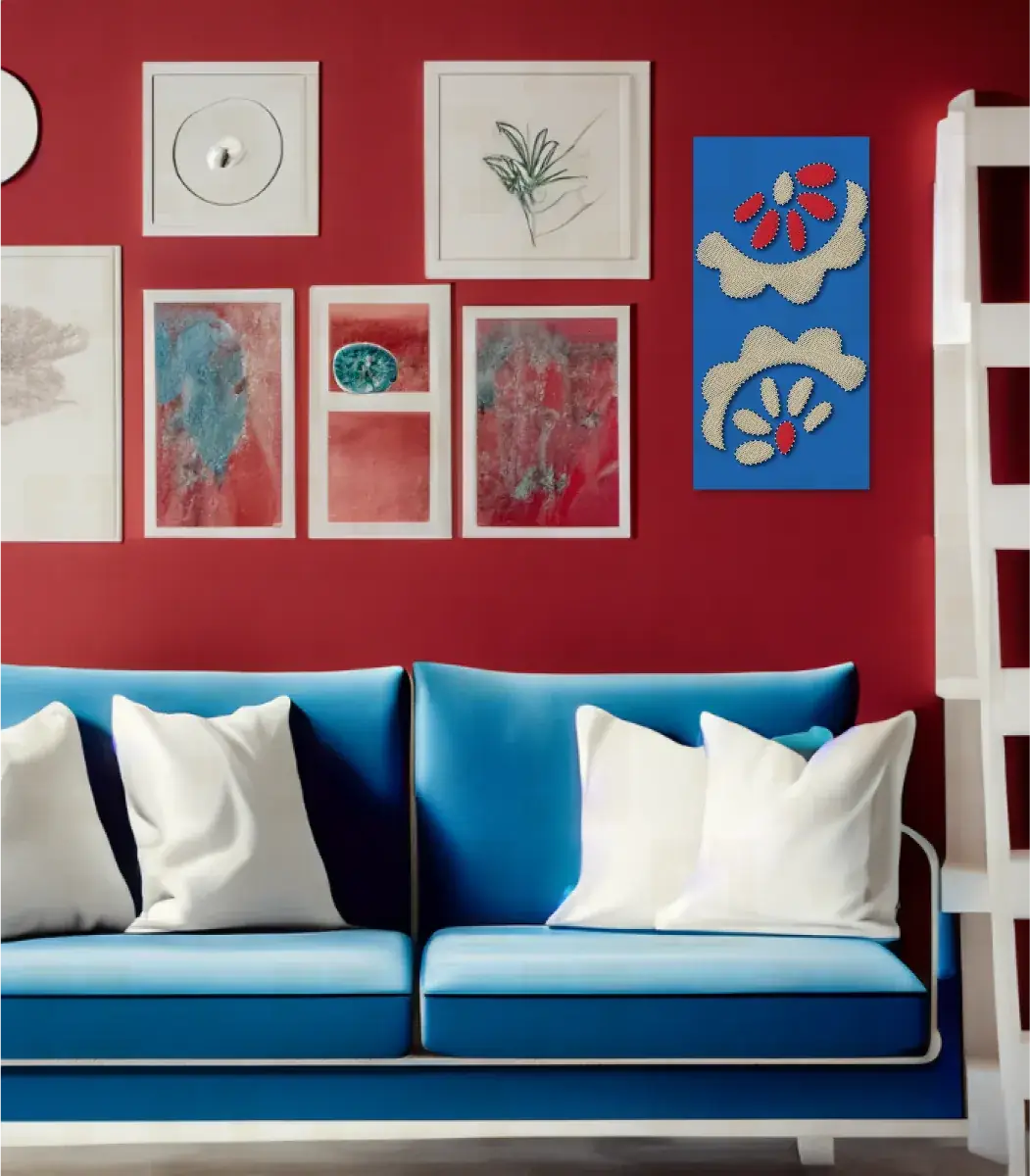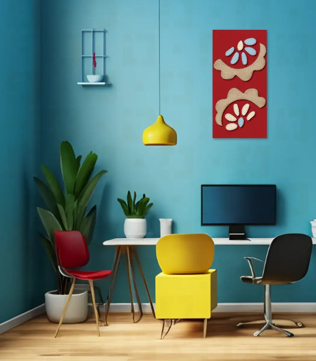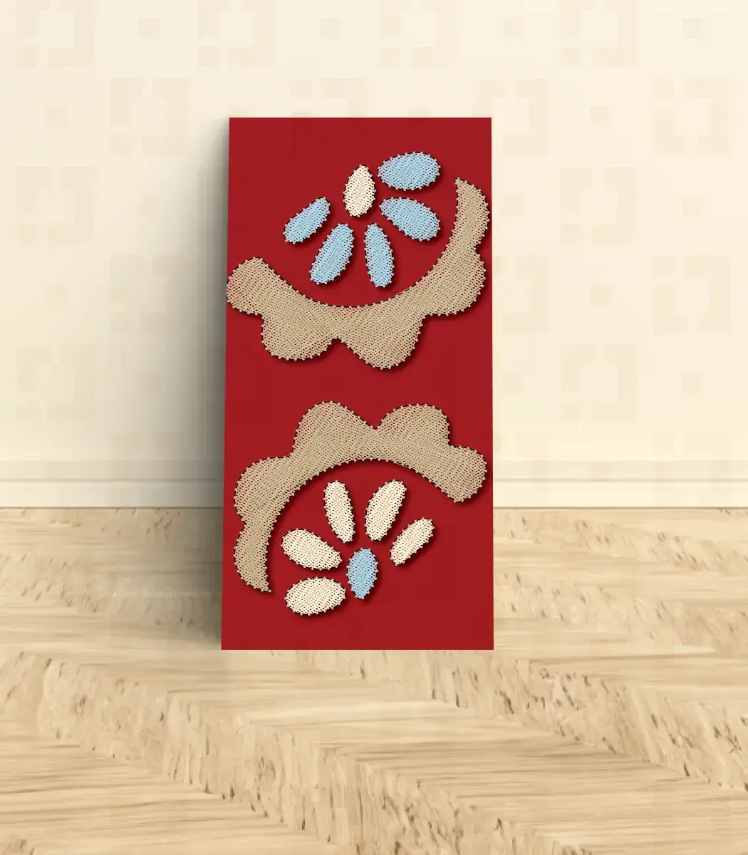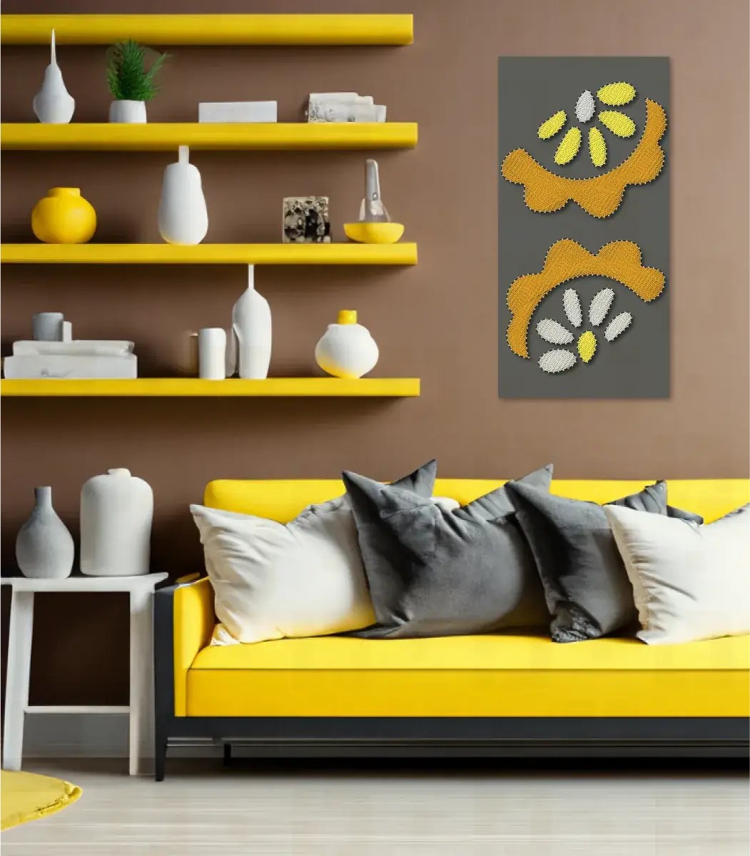 String art nature flowers, Contemporary art handmade, Two Flowers Inspired string art wall decor using very high quality materials, Available in blue, gray and red.