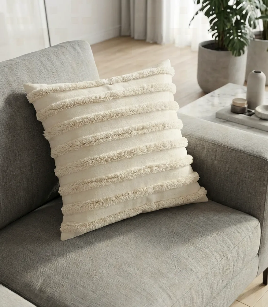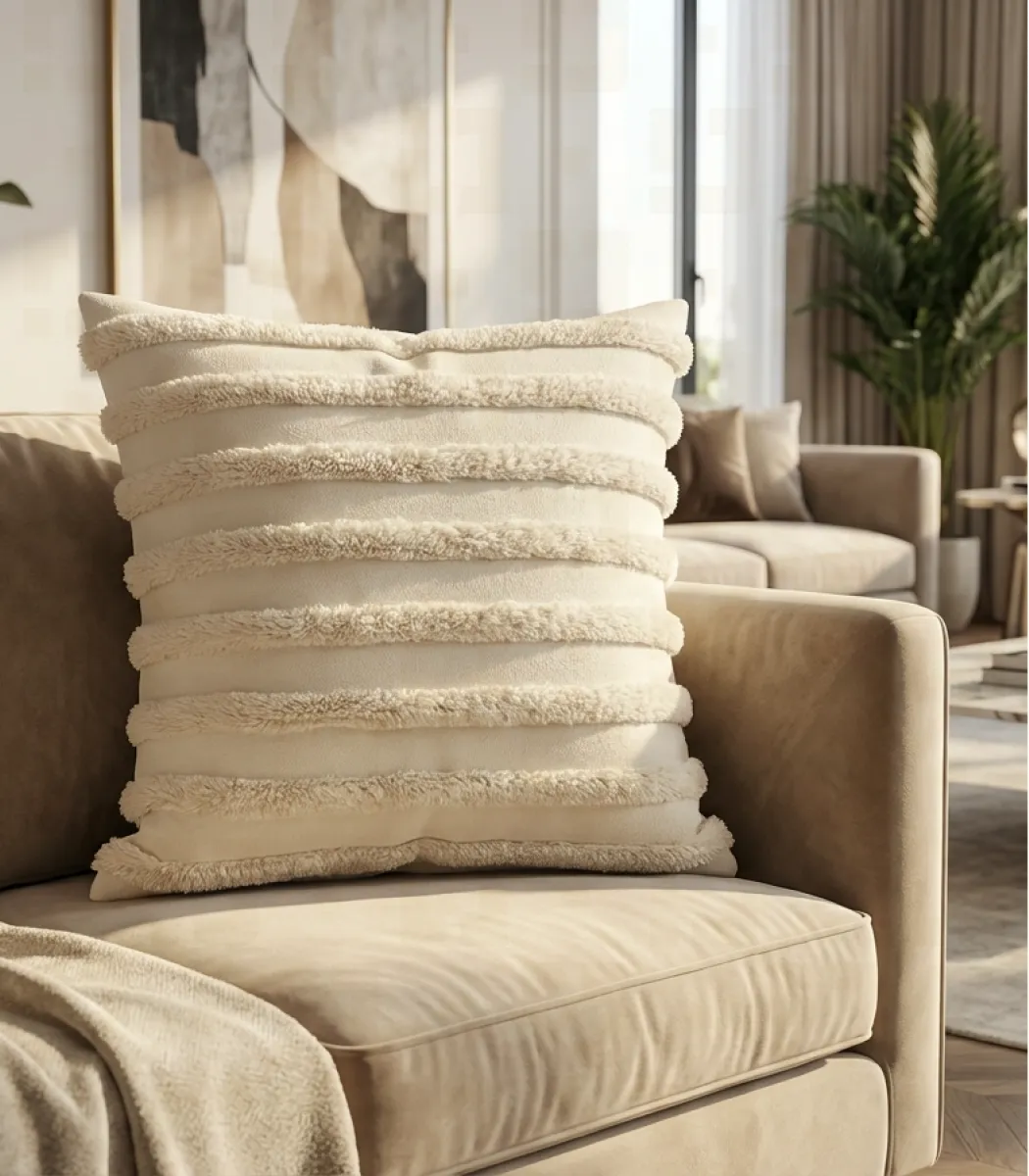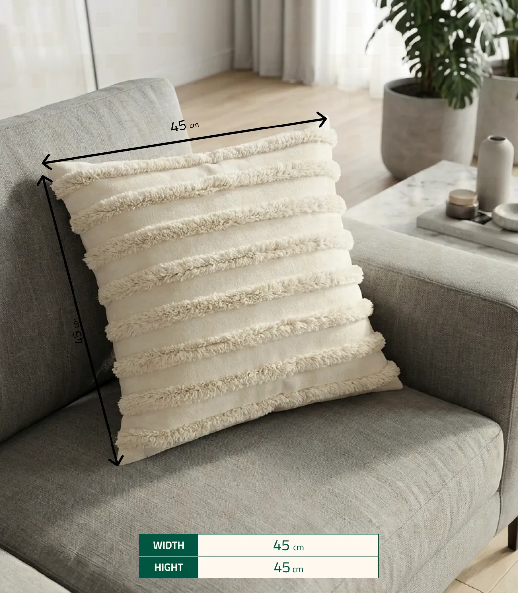 Rufaida introduces the Cushion, created to elevate modern living spaces with subtle elegance. Featuring a sophisticated blend of Fiber texture and Off white hues, it complements both modern and classic interiors. A timeless cushion created to enhance interiors with soft, premium presence.