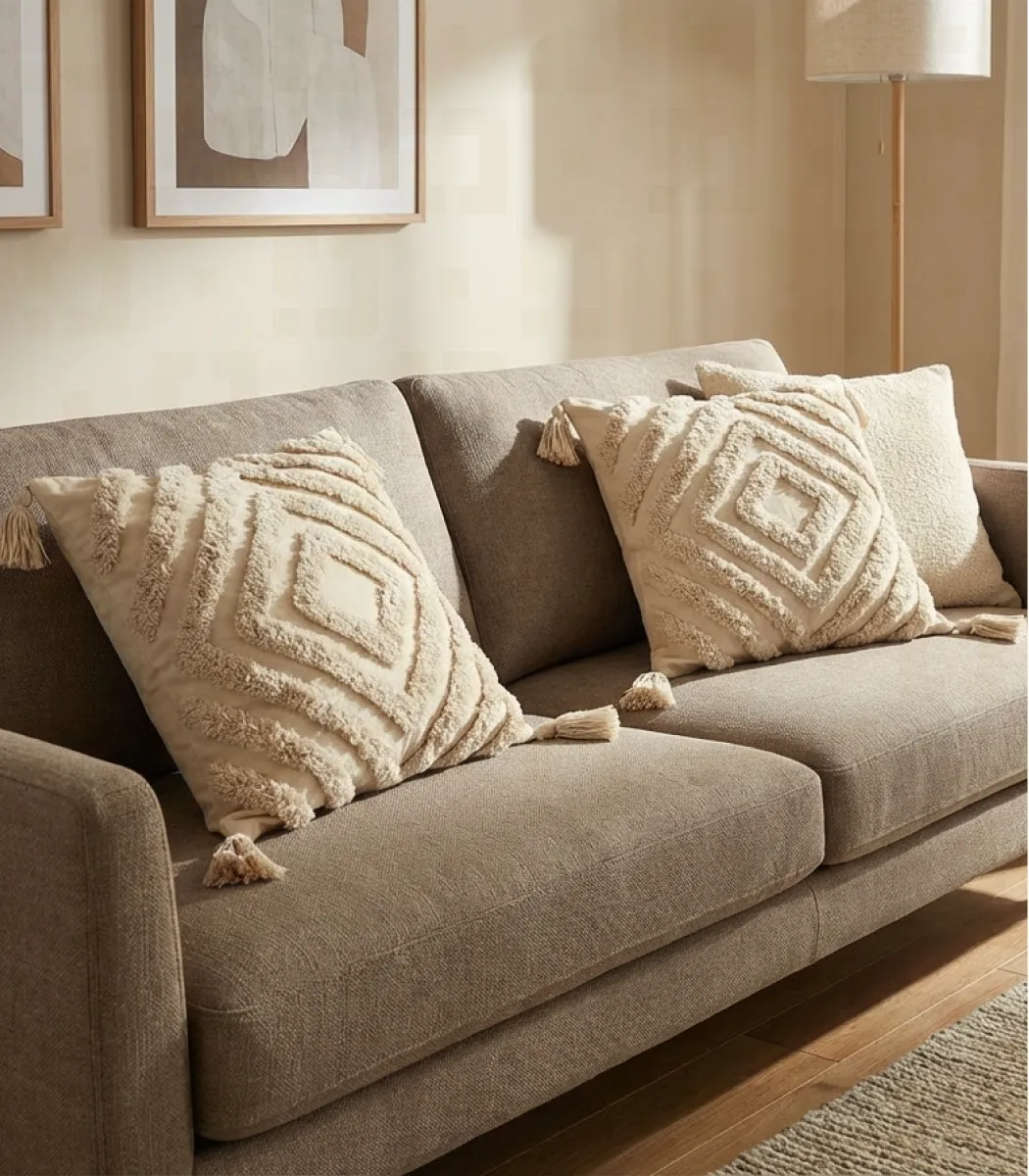Rufaida reveals the Cushion, designed to enrich interiors with quiet luxury and refined style. Designed with exceptional attention to detail, its Fiber surface and subtle Off white tone reflect superior craftsmanship. A premium cushion designed to enrich your living space with subtle elegance.