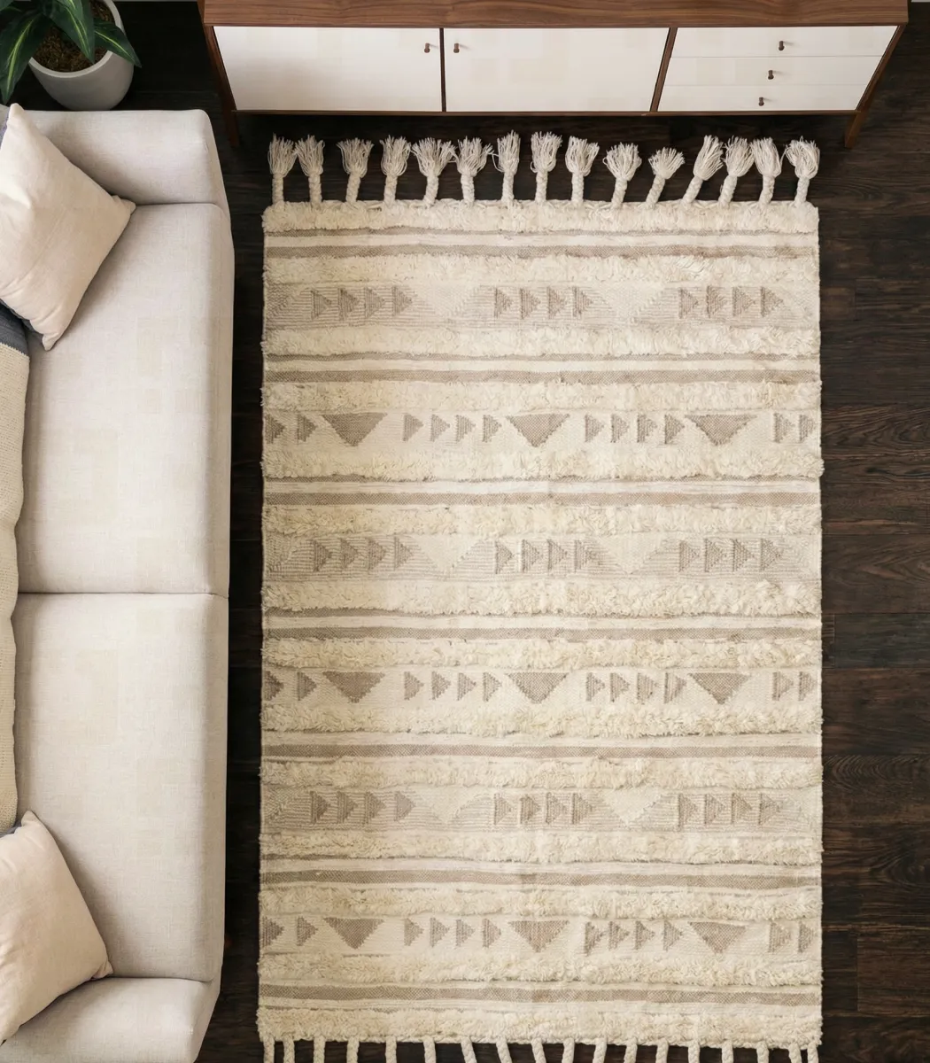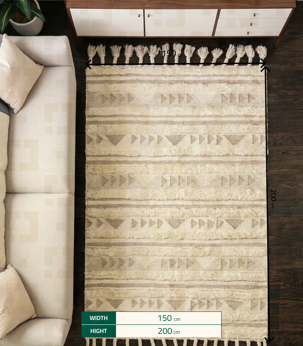 Rufaida presents the Wool Rug, crafted to elevate sophisticated living. The combination of high-quality Fiber and refined Off white tones enhances any setting. Crafted to bring harmony, elegance, and premium character.