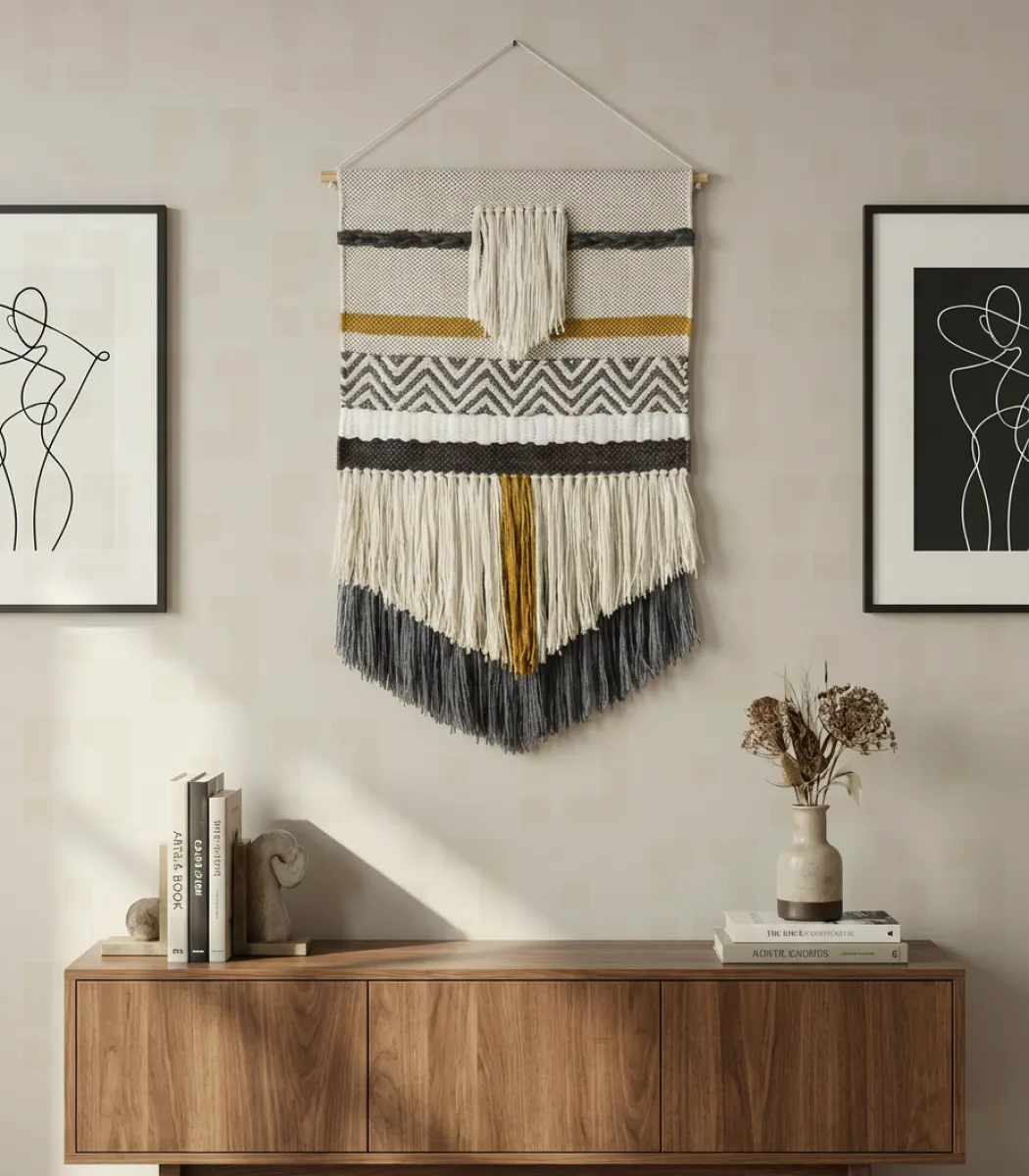 Rufaida reveals the wool wall rug, a refined wall rug crafted to express quiet luxury. Featuring luxurious Fiber and wood fibers and carefully selected Multicolor accents, it brings softness and sophistication to vertical spaces. A premium wall accent designed to elevate interiors with artistic luxury.