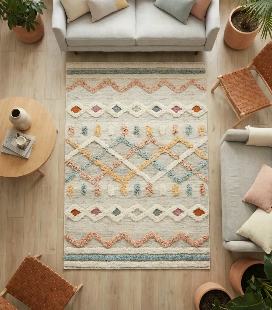 Rufaida reveals the Wool Rug, defined by balance, refinement, and quiet confidence. Crafted from premium Fiber in an elegant Multicolor tone, it adds depth and harmony. Crafted to bring harmony, elegance, and premium character.