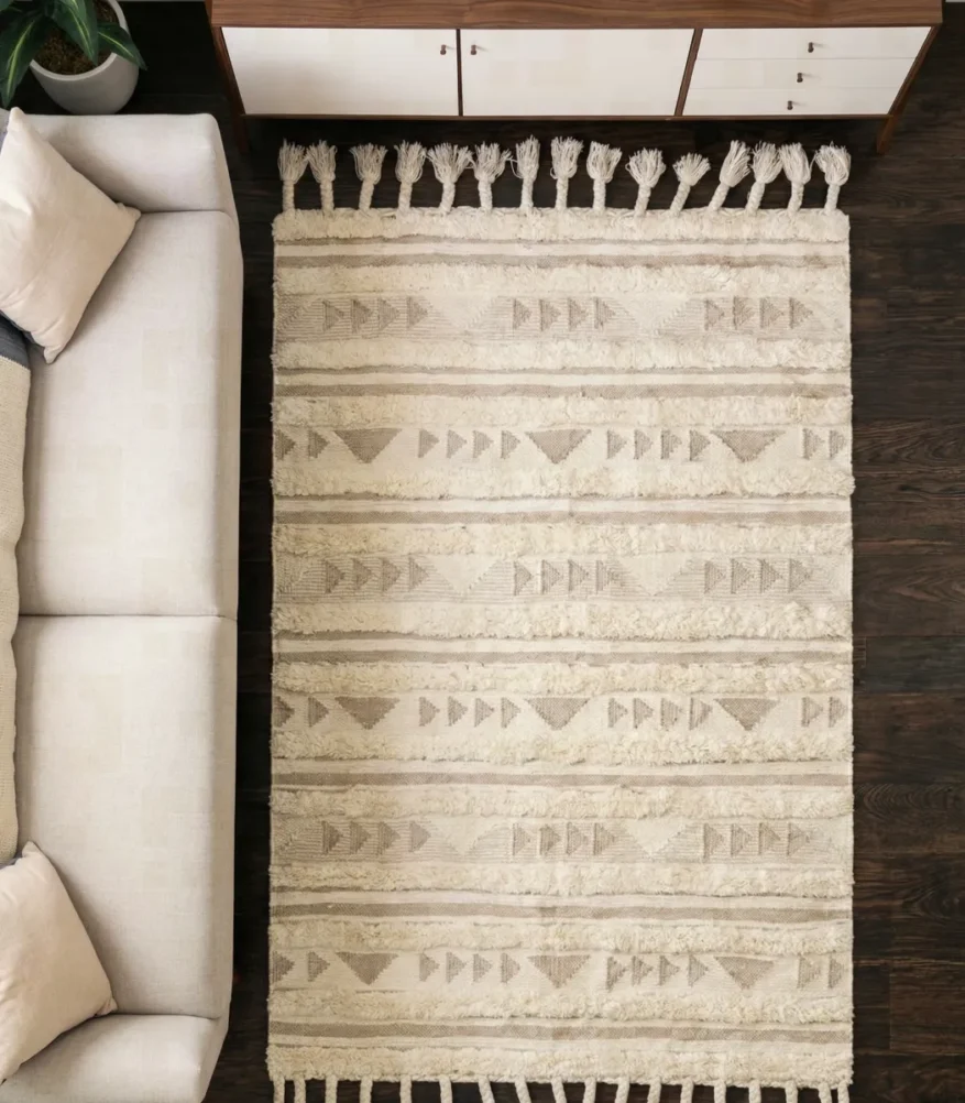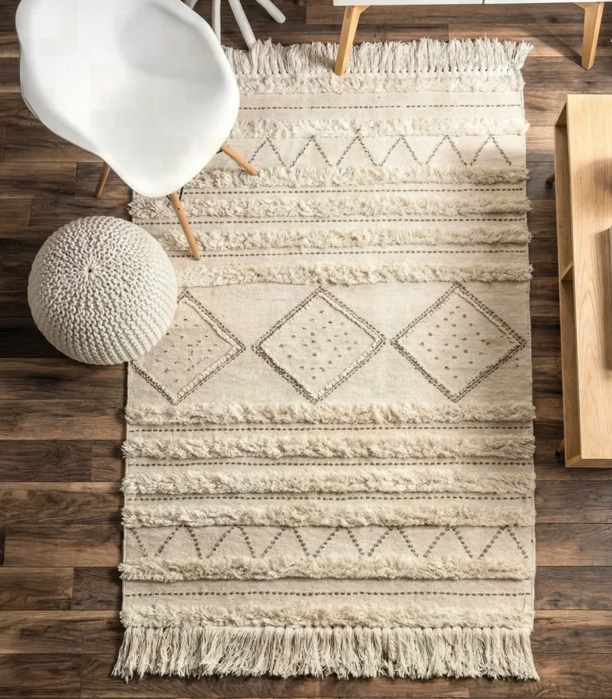 Rufaida unveils the Wool Rug, where elegance meets understated luxury. Designed with attention to detail, its Fiber finish and Off white shade reflect quality. Crafted to bring harmony, elegance, and premium character.