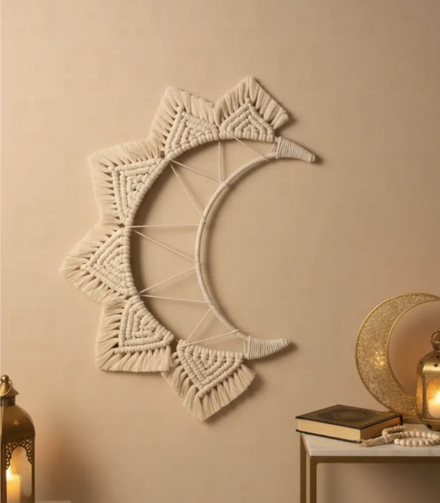 Sugar crafts reveals the Macrame Moon and Star 3 Pcs, blending refined design with the calm essence of Ramadan. With its refined Fiber, Wood texture and soft Off white palette, it enhances the peaceful mood of the season. Designed to enhance Ramadan décor with quiet luxury and grace.