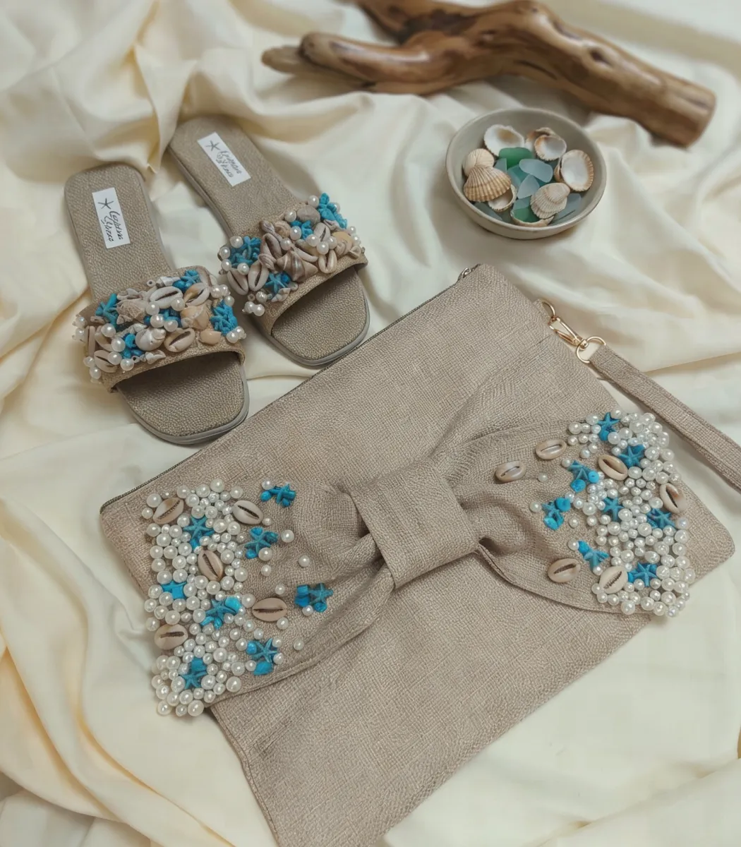 Original price was: 3728 EGP.1728 EGPCurrent price is: 1728 EGP.Step into the world of Art craft with this exclusive Bohemian clutch and slipper ensemble — a kaleidoscope of handwoven color celebrating free-spirited luxury with every stitch and step.