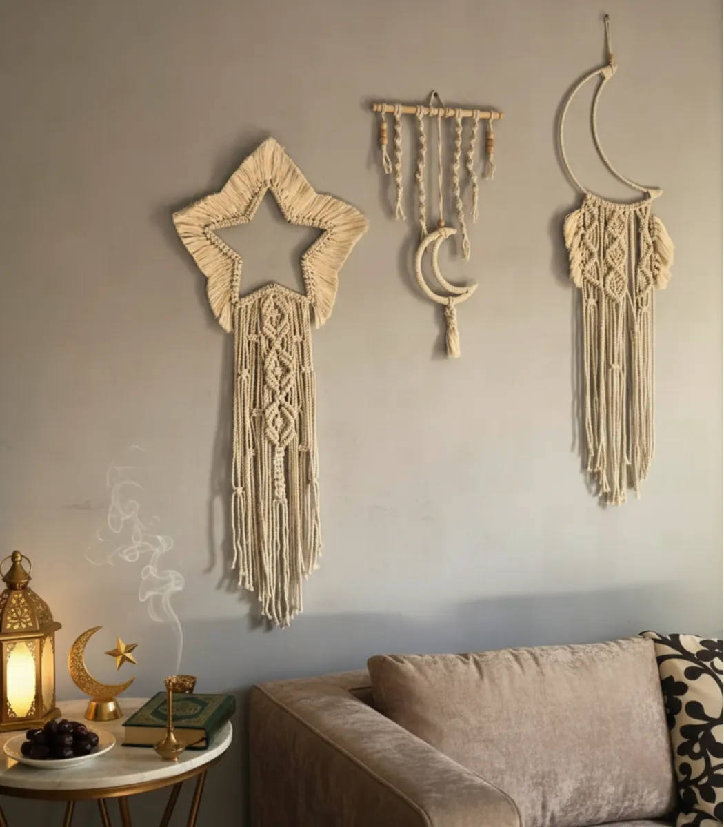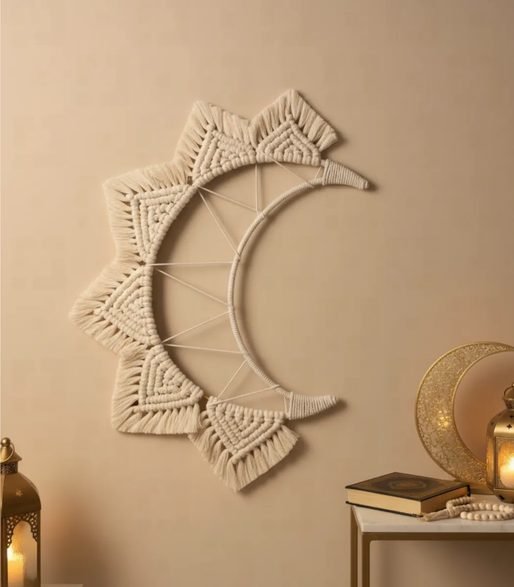 Original price was: 780 EGP.663 EGPCurrent price is: 663 EGP.Sugar crafts presents the Macrame Moon and Star, designed to capture the elegance and serenity of the Ramadan season. Featuring a delicate balance of Fiber, Wood texture and Off white tones, it reflects timeless Ramadan elegance. Designed to enhance Ramadan décor with quiet luxury and grace.